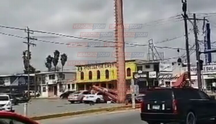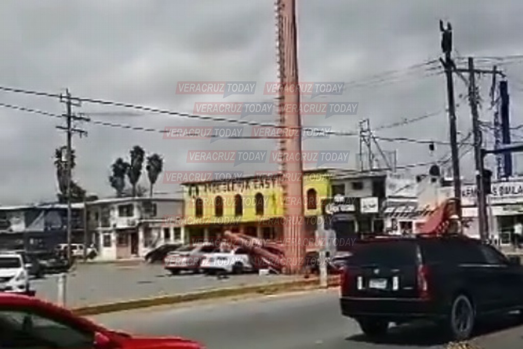 En redes sociales circulan videos del momento en que el anuncio del supermercado se desploma sobre un vehículo estacionado en la ciudad de Matamoros, Tamaulipas.