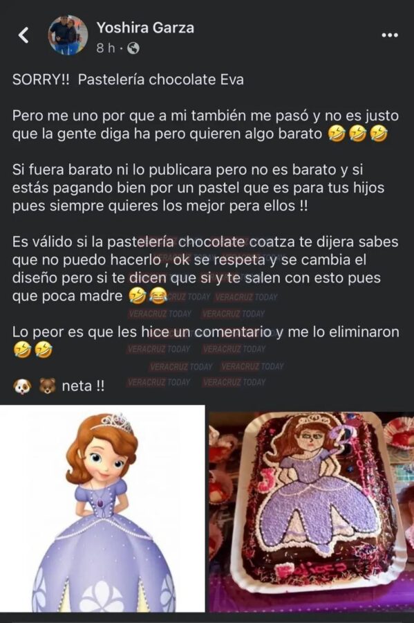 “Me uno porque también me pasó, si fuera barato ni lo publicara, pero no es barato y si estás pagando bien por un pastel que es para tu hijo, siempre quieres lo mejor para ellos”, expuso Yoshira Garza.