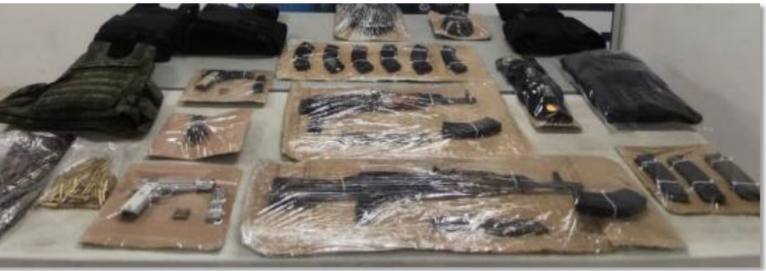 Fue a través de trabajo estratégico y labores de inteligencia que se logró obtener la ubicación de los presuntos criminales a quienes se les aseguró armas de fuego cortas y armas tipo fusil AK 47, una granada de fragmentación, chalecos tácticos, dos gorras negras con insignias CDG, un casco kevlar balístico, dos pecheras, seis cargadores y una gran cantidad de cartuchos; además de una camioneta jeep con placas XGK698A.