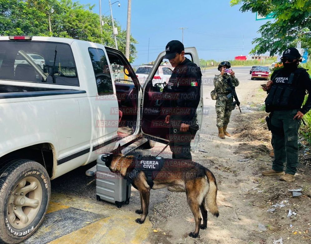 Asimismo, en Coatzacoalcos, personal de la Fuerza Civil junto con la Secretaría de Marina, la Guardia Nacional y las Direcciones de Tránsito y Transporte estatal llevaron a cabo un operativo para detectar situaciones de riesgo y cualquier tipo de narcóticos en los diferentes establecimientos dedicados al envío de paquetería.