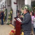 “Muchísimas gracias por estar acompañando a mi esposo en este día, yo sé que el dónde quiera que este los está viendo y les está agradeciendo estas muestras de cariño y a esas personas cobardes que le arrebataron la vida, cobardemente porque así fue, porque no lo pudieron hacer de otra manera, la justicia divina nadie se salva”, expuso Eloísa Zetina Gómez, síndica y esposa del ex alcalde de San Juan Evangelista, Andrés Valencia Ríos.