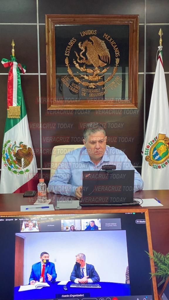 Xalapa, Ver., 10 de febrero de 2022.- Este jueves, en representación del Gobernador Cuitláhuac García Jiménez, el Secretario de Seguridad Pública, Hugo Gutiérrez Maldonado, sostuvo una reunión virtual con Timothy W. Dumas, Ministro Consejero de Seguridad, perteneciente a la Embajada de Estados Unidos de América (EUA) en México, con el objetivo de fortalecer las acciones de cooperación en materia de seguridad en la entidad veracruzana.