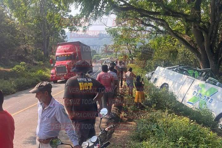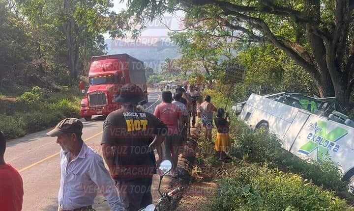 Un autobús de pasajeros sufrió una aparatosa volcadura sobre la carretera federal Catemaco – Hueyapan de Ocampo, al sur de Veracruz, el saldo fue de 16 personas lesionadas.