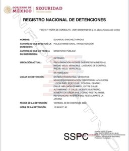 De acuerdo con el Registro Nacional de Detenciones, los agentes de la Fiscalía Veracruzana dieron cumplimiento a la orden de aprehensión antes de las 13:00 cuando se encontraba en un restaurante de la colonia centro pero ene el municipio de Acayucan. Actualmente se desempeñaba como presidente del sistema DIF municipal, por designación de Lorena Sánchez Vargas.