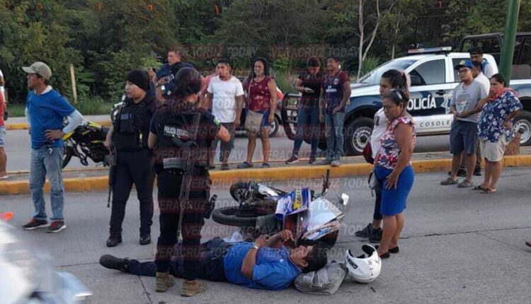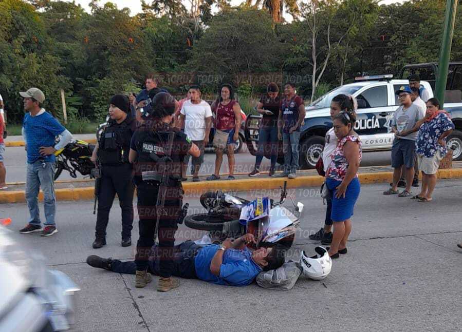 Cosoleacaque, Ver. Con fuertes golpes resultó un motociclista la tarde de este viernes luego de ser impactado por una camioneta particular mientras circulaba sobre la carretera Cosoleacaque-Minatitlán. Todo esto frente a la comandancia de Cosoleacaque.