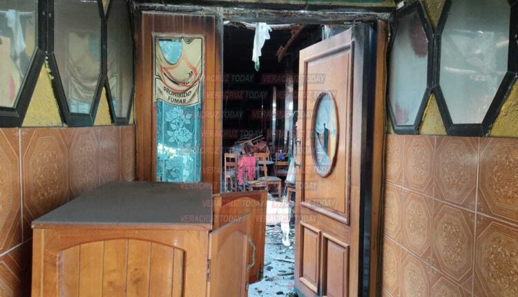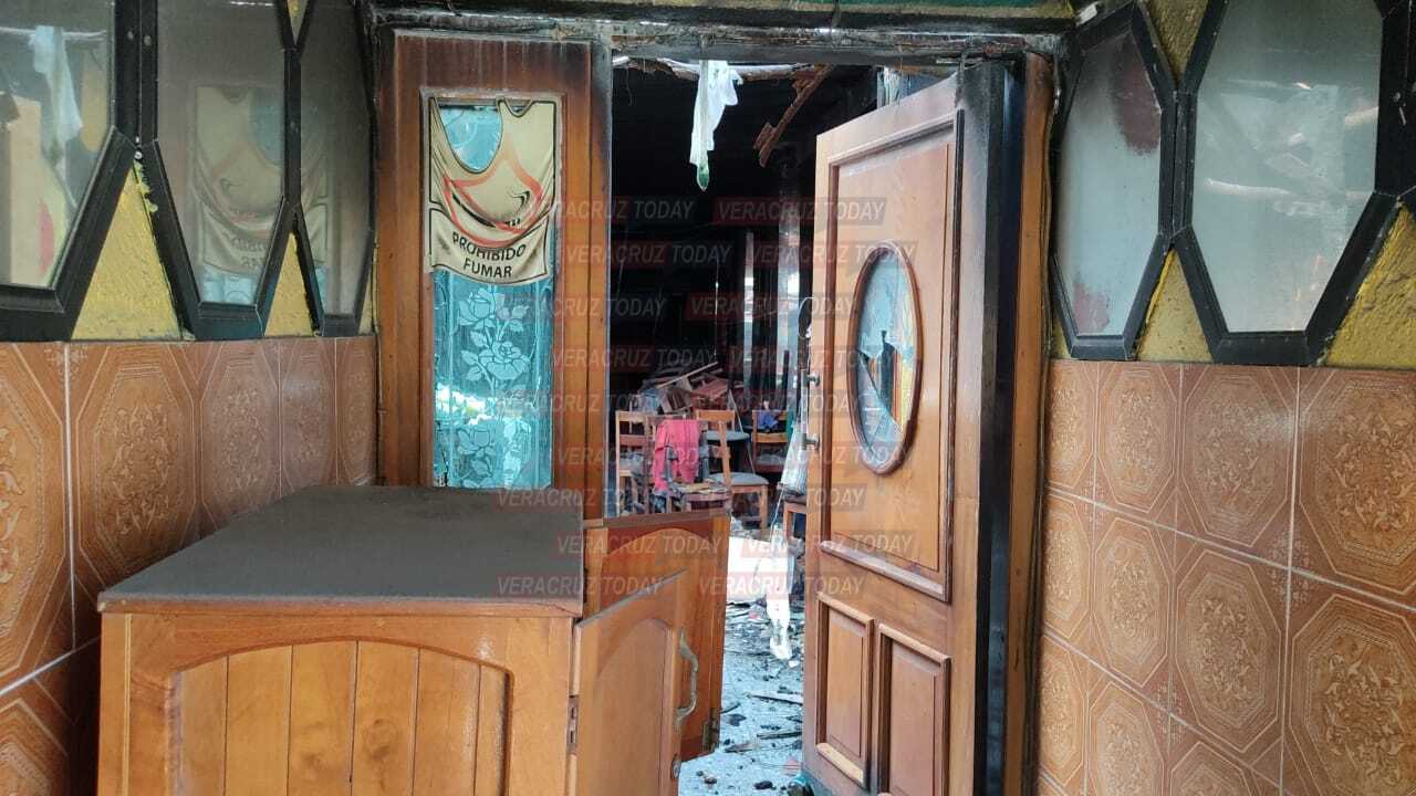 Las sillas y mesas continúan regadas, por todas partes hay huellas de quemaduras y explosiones al interior del inmueble que, continúa resguardado por dos elementos de la policía estatal.