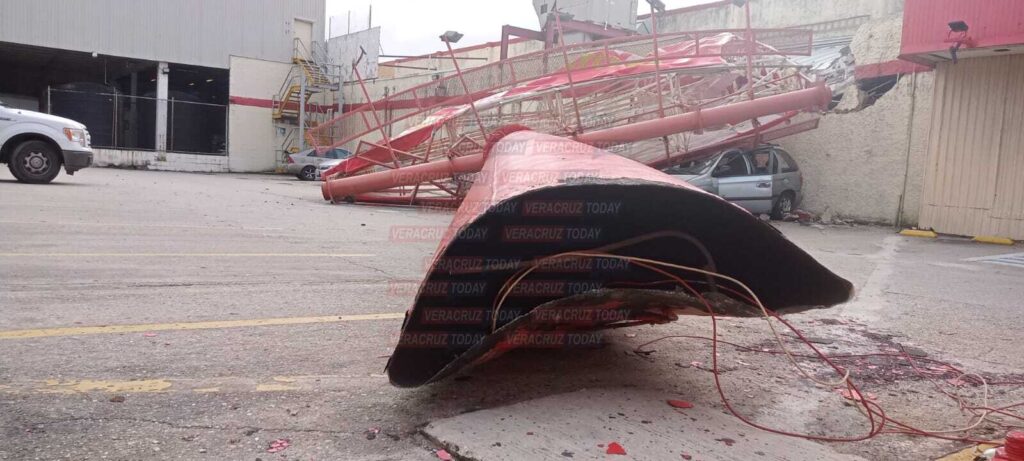 Un enorme espectacular de la tienda comercial Soriana Mercado ubicada en el centro de Coatzacoalcos al sur de Veracruz colapsó presuntamente a causa de los los fuertes vientos que prevalecen en la región sur; dos personas que se encontraban a bordo de unidades particulares fueron aplastados por la estructura de gran peso.