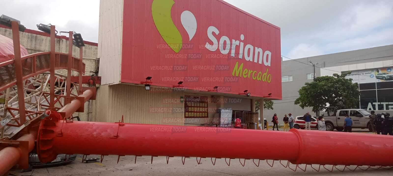 Un enorme espectacular de la tienda comercial Soriana Mercado ubicada en el centro de Coatzacoalcos al sur de Veracruz colapsó presuntamente a causa de los los fuertes vientos que prevalecen en la región sur; dos personas que se encontraban a bordo de unidades particulares fueron aplastados por la estructura de gran peso.