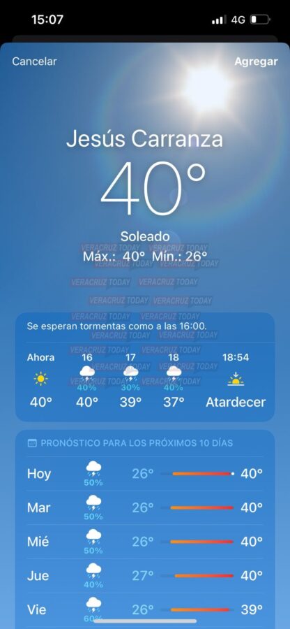 De acuerdo con el reporte de la Secretaría de Protección Civil de Veracruz, la ola de calor seguirá afectando los proximos días con altas temperaturas, pero prevén que lo más extremo se registre este miércoles 14 de junio, es cuando el pronóstico marca las temperaturas más elevadas.