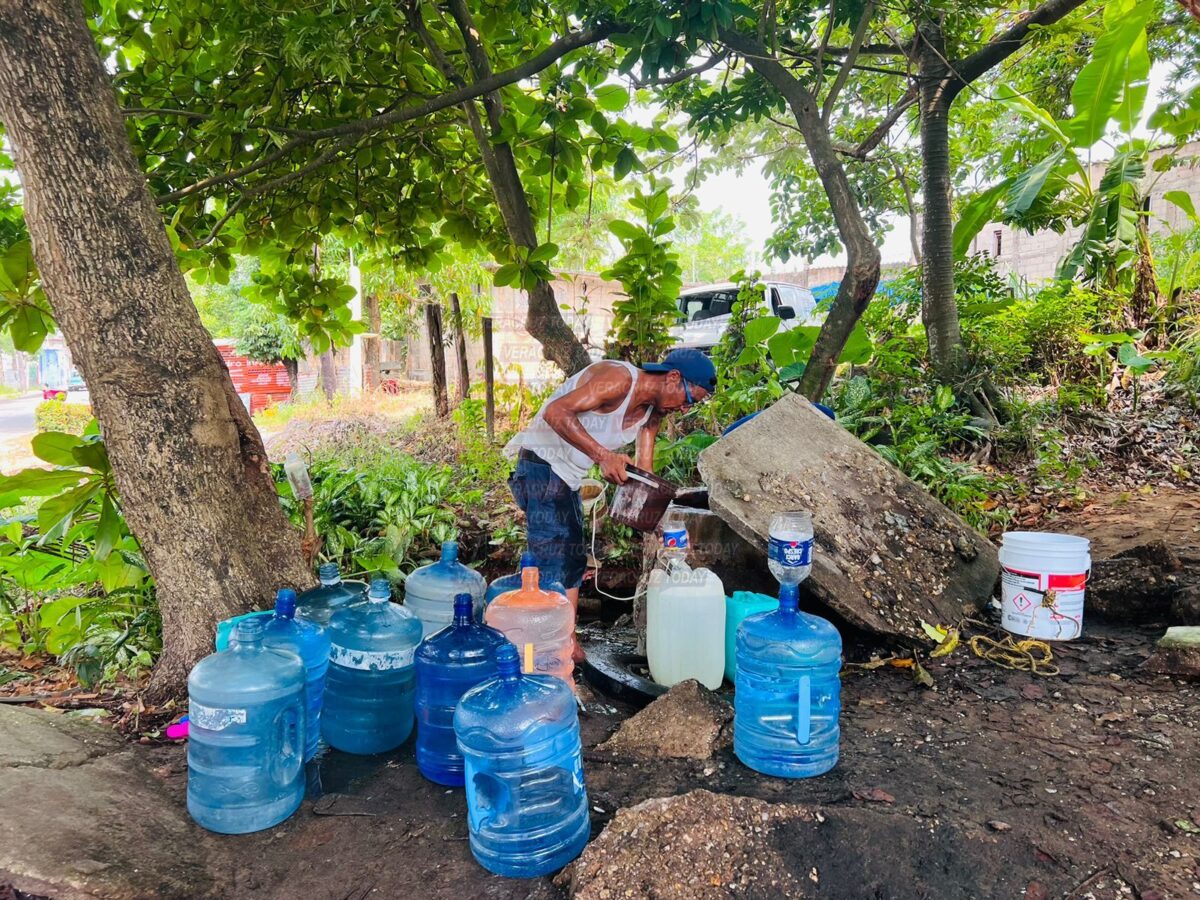 En Coatzacoalcos cualquier tubería donde salga un chorro de agua se ha convertido en una fuente de abastecimiento para quienes no tienen en sus casas, con tambos, cubetas y garrafones acuden a manantiales, pozos y cisternas porque la necesitan para los servicios domésticos.