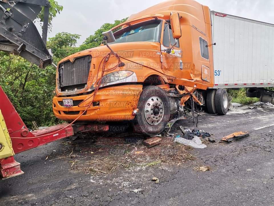De acuerdo con información obtenida por este medio, el accidente se registró después de las diez horas, cuando el chófer del tractocamión de la empresa «Tres Guerras», conducía con dirección al municipio de Ixhuatlán del Sureste, sin embargo, no se percato de la segunda unidad de carga que se encontraba estacionada a un costado y la impacto en la parte trasera.
