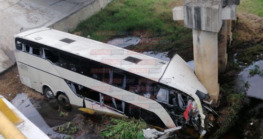 Un autobús de turismo de dos pisos se salió de la autopista La Tinaja -Ciudad Isla y terminó debajo de un puente impactado contra uno de los pilares, a la altura de Cosamaloapan en Veracruz, de acuerdo con el reporte de Protección Civil cinco personas fallecieron y 56 resultaron lesionadas.