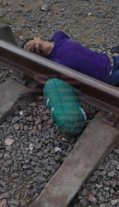 Los vecinos encontraron el cuerpo de esta persona que vestía playera morada y pantalón de mezclilla azul, a un costado de las vías del tren junto a una maleta de ropa, cerca de la avenida 5 de Mayo