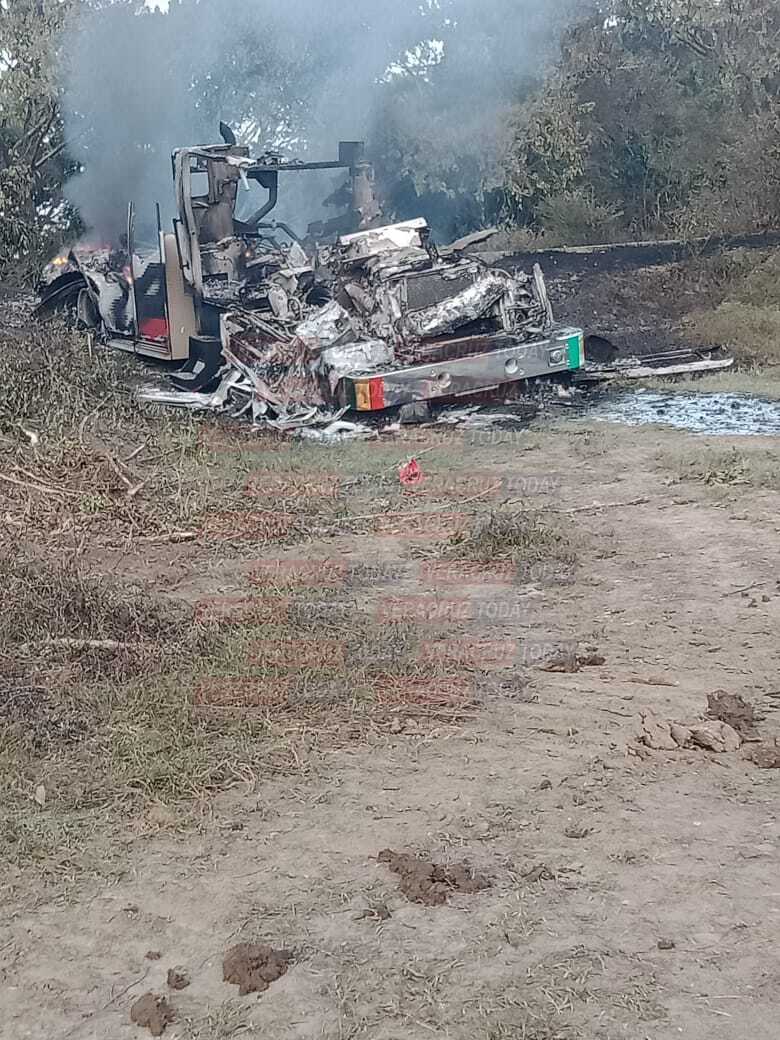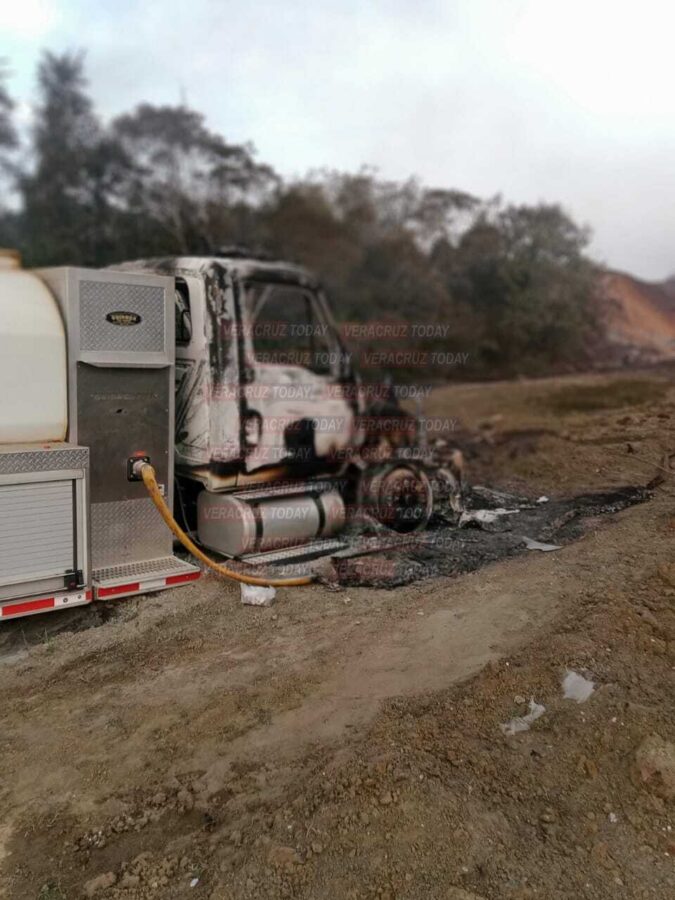 Se observan a los bomberos de Petróleos Mexicanos y Protección Civil entrar y salir; el incendio continúa, aunque en menor proporción y está controlado. Incluso la capa de humo que se observa es menor en comparación con el día de ayer cuando se registró el siniestro.