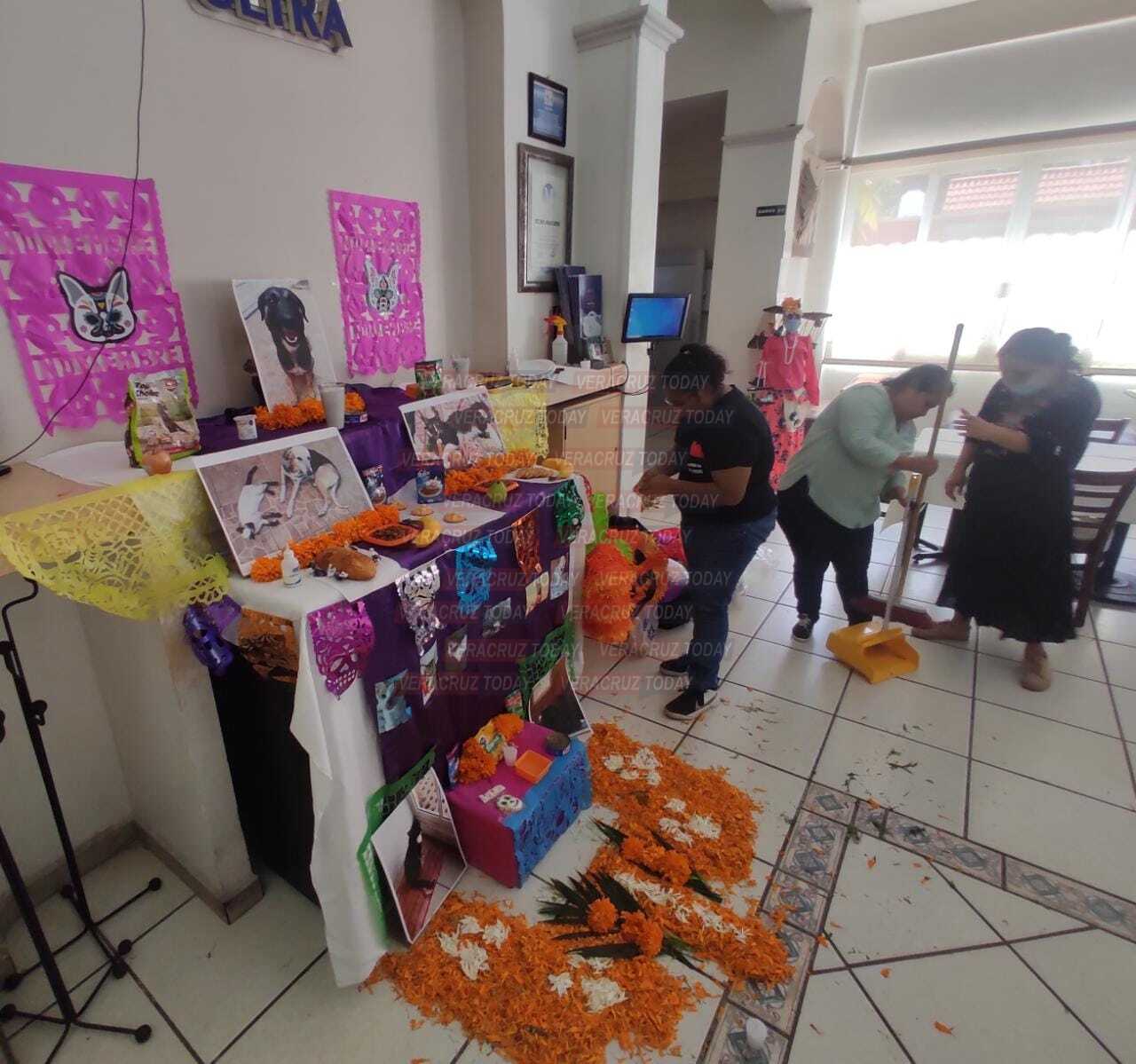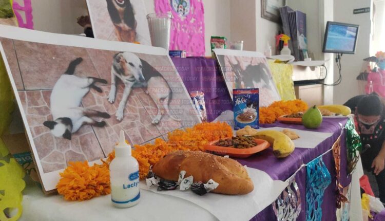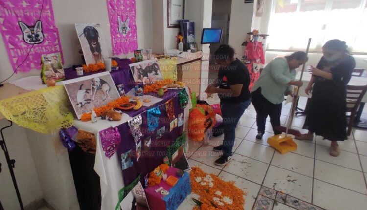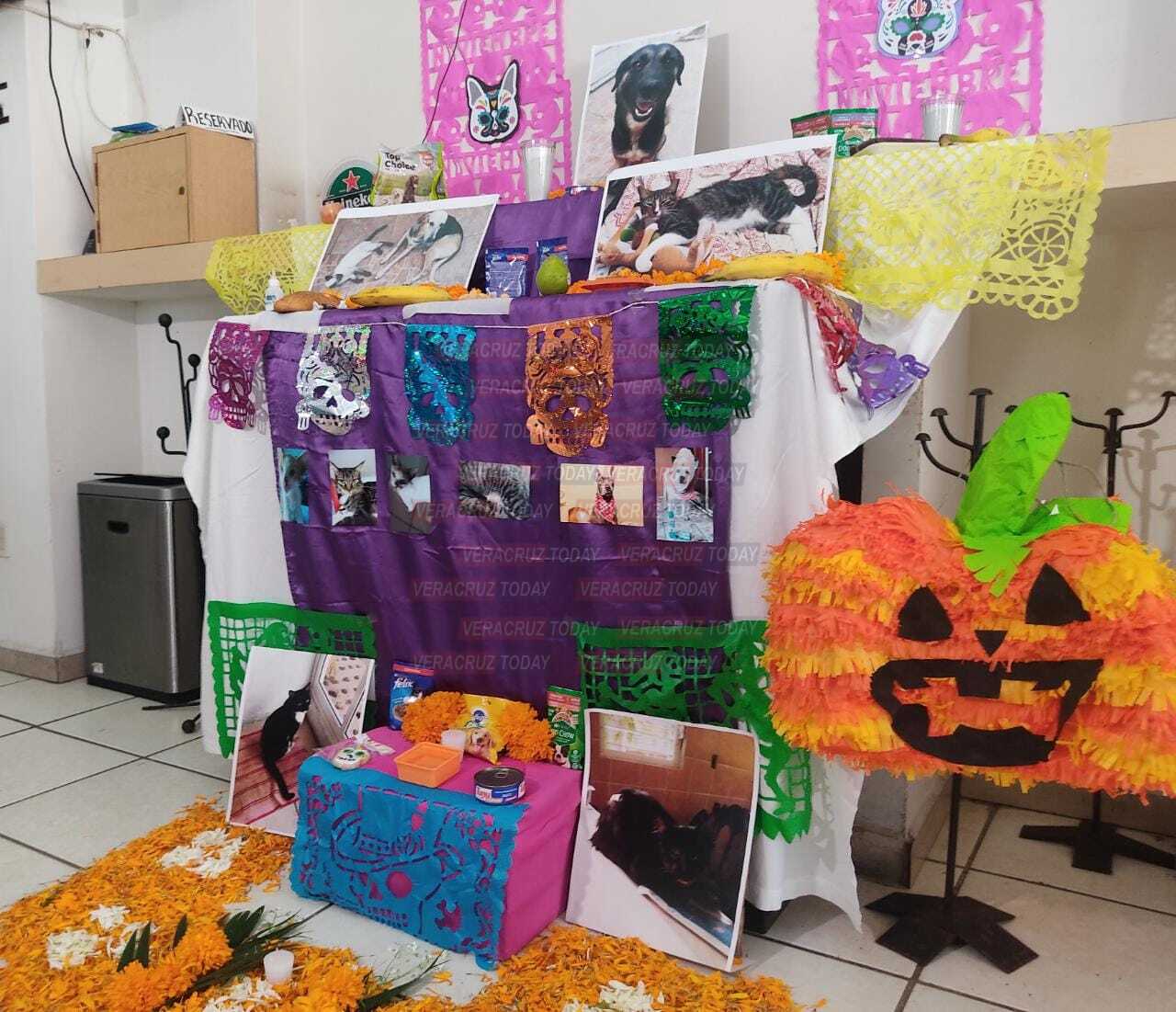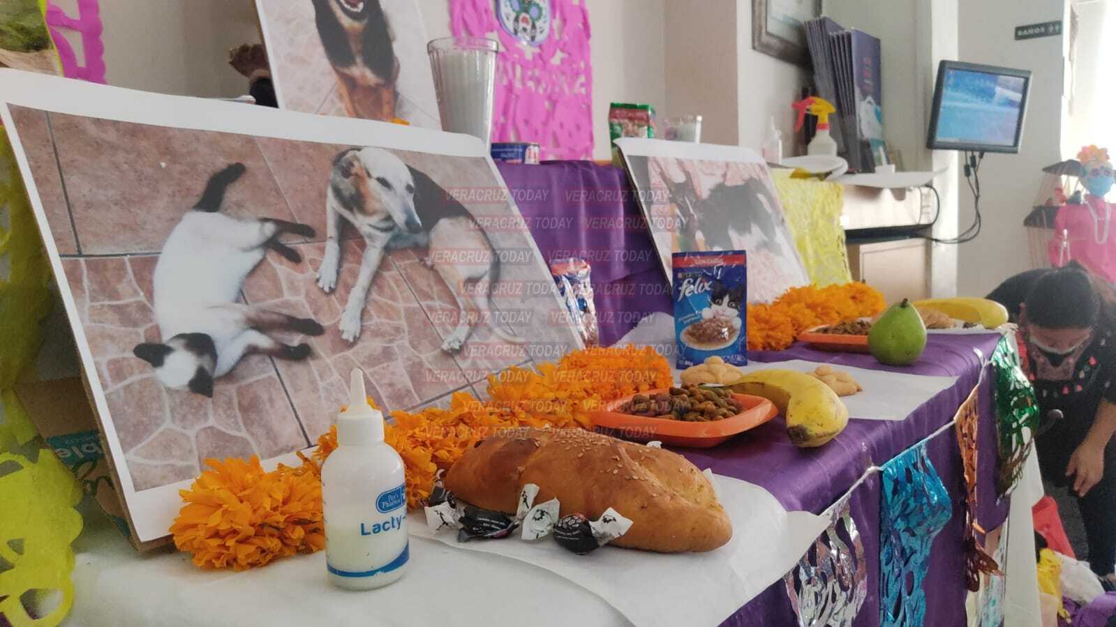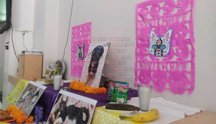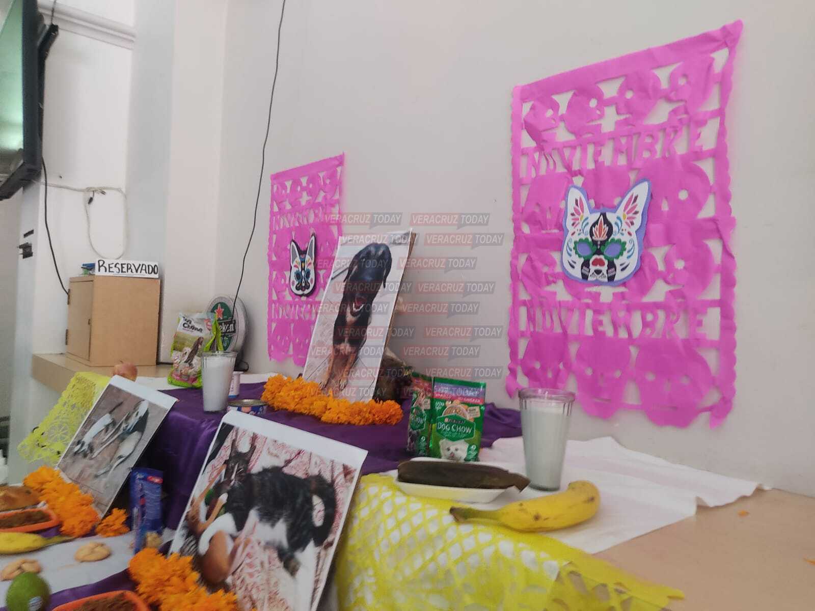 “La idea surgió de cuatro compañeras de Coatzacoalcos que tenemos albergues y nos organizamos. Es un pequeño altar porque no podemos poner todas las fotos de los animalitos que lamentablemente se han ido; además de lo tradicional pues tiene su comida favorita, como croquetas y galletas”, explicó Isis.