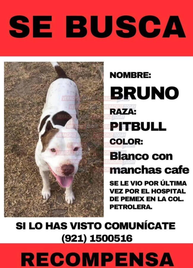 La angustia se apodera de Susana Meza, quien lleva dos meses buscando a Bruno, su querido perrito de la raza pitbull que desapareció misteriosamente el pasado 14 de noviembre en Minatitlán, en el sur de Veracruz.
