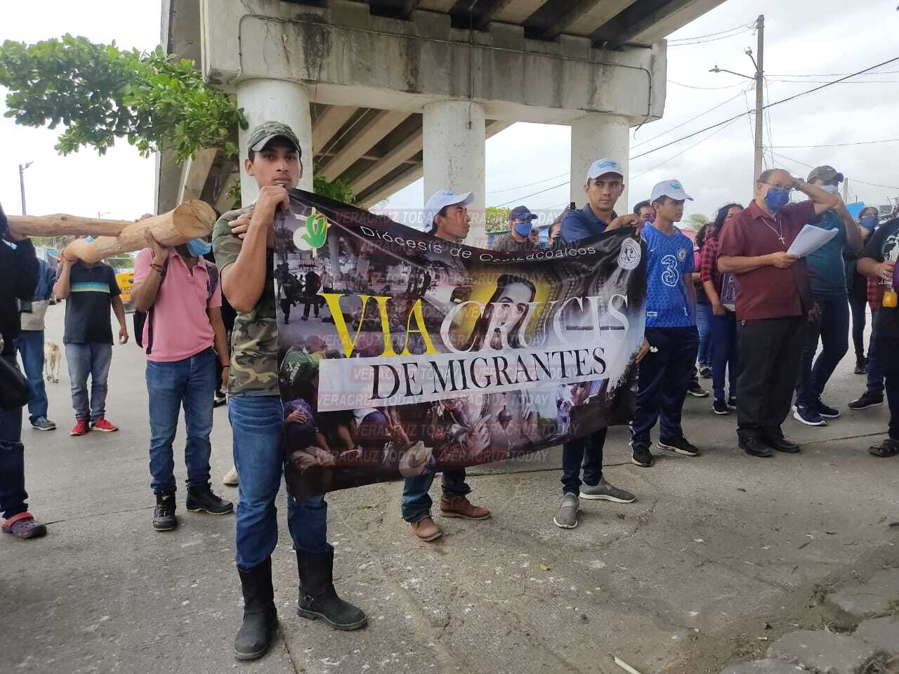 Coatzacoalcos, Ver – Una cruz de madera rustica cargada por cuatro hondureños iba al frente del contingente, donde no importaba si eran de México o extranjeros, pues solo tenían una petición, pedir la intercesión de Dios en su travesía.