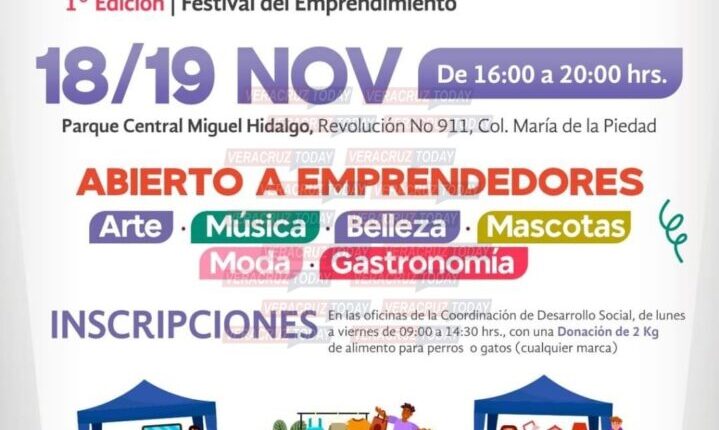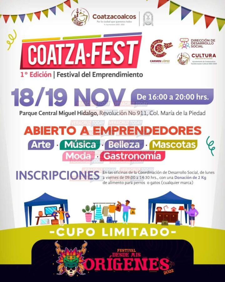 -“Coatza Fest”, también en el Parque Central Miguel Hidalgo este viernes 19 y sábado 20, a partir de las 16:00 horas, con la participación de más de cien emprendedores locales que expenderán moda, música, belleza, gastronomía y artículos para mascotas.