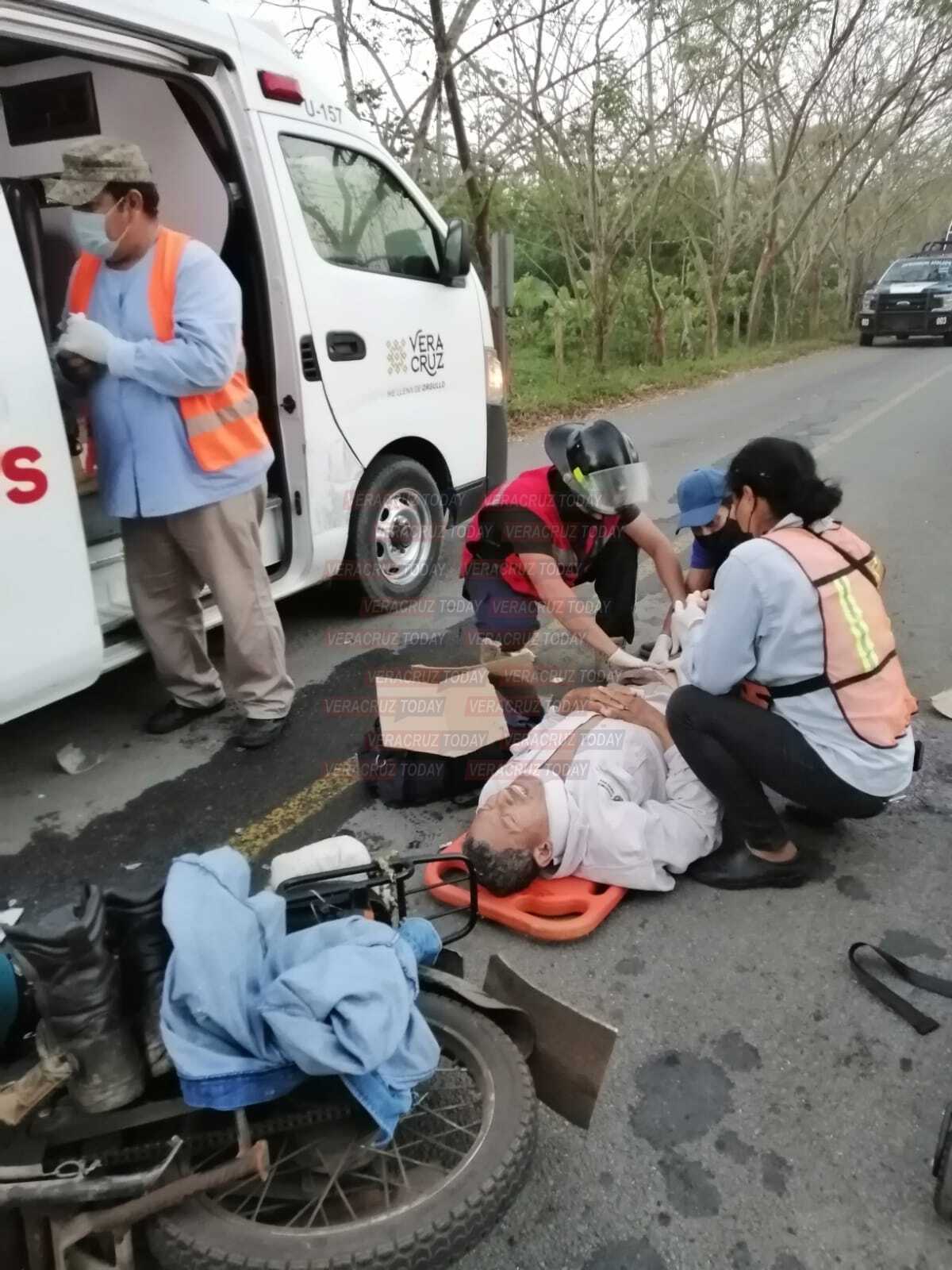 Fueron paramédicos de protección civil Cosoleacaque quienes atendieron a José Antonio Patraca que resulto con probable fractura en una de sus piernas y quien viajaba acompañado de un menor de nombre Yair Patraca, este sufriendo contusiones en el cuerpo. Ambos viajaban en una motocicleta con la cual se impactaron de frente en contra de un segundo motorizado.