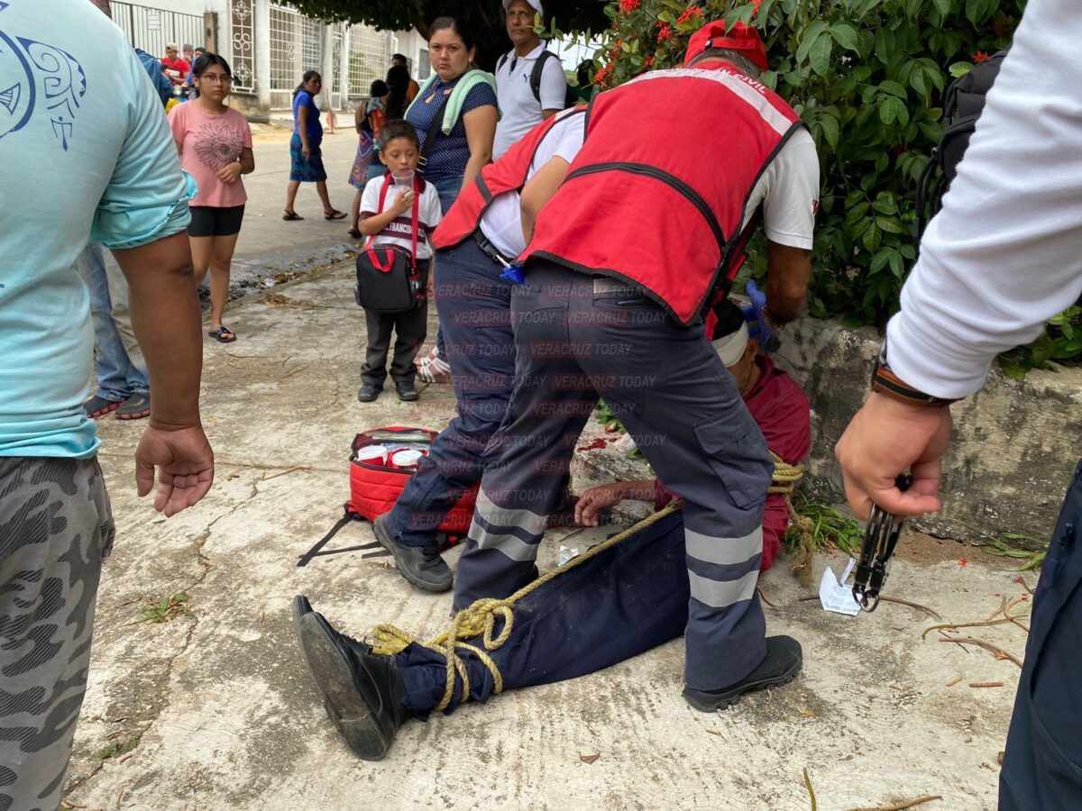 El hecho ocurrió cerca de las dos de la tarde sobre la calle Benito Juárez, donde el ebrio conductor viajaba a bordo de su camioneta de modelo atrasado, impactando a un vehículo estacionado al cual intentaba subirse Rubicelia Blanco de 50 años, misma que resultó lesionada al recibir el impacto de la camioneta.