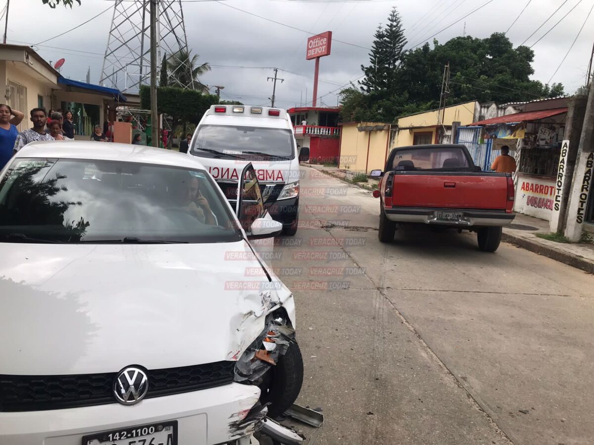 Minatitlán, Ver. Ebrio sujeto ocasionó un accidente vial la tarde de este lunes sobre calles de la colonia Insurgentes Sur, lugar a donde se presentaron paramédicos para atender a una señora que resultó lesionada a consecuencia del percance y por el cual el culpable fue detenido por elementos policiacos.