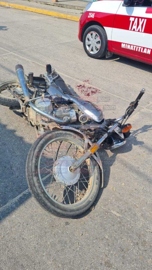 Cosoleacaque, Ver. Paramédicos de Protección Civil atendieron esta tarde a un borracho motociclista que cayó de su unidad cuando circulaba sobre la avenida Héroes de Totoapan en la colonia Jose F. Gutiérrez, siendo auxiliado también por vecinos del sector.