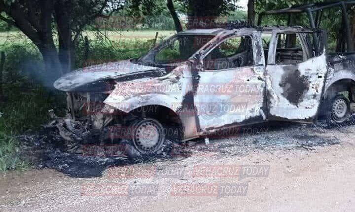 Personas que circulaban sobre la carretera de terracería que conduce al punto conocido como Playa Vicente, reportaron que en la última curva para llegar al lugar, se encontraba calcinada una patrulla de la policía municipal y observaron cuerpos de elementos de la misma corporación en el lugar.