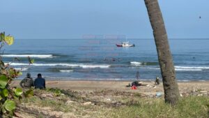 Sobre el malecón, a la altura de la zona donde supuestamente se cayó el arma, hay una camioneta de la marina resguardando, en caso de que las olas hagan que recale, además que seguido se observa una lancha de la corporación recorres varias millas en el mar.