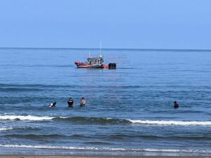 Sobre el malecón, a la altura de la zona donde supuestamente se cayó el arma, hay una camioneta de la marina resguardando, en caso de que las olas hagan que recale, además que seguido se observa una lancha de la corporación recorres varias millas en el mar.