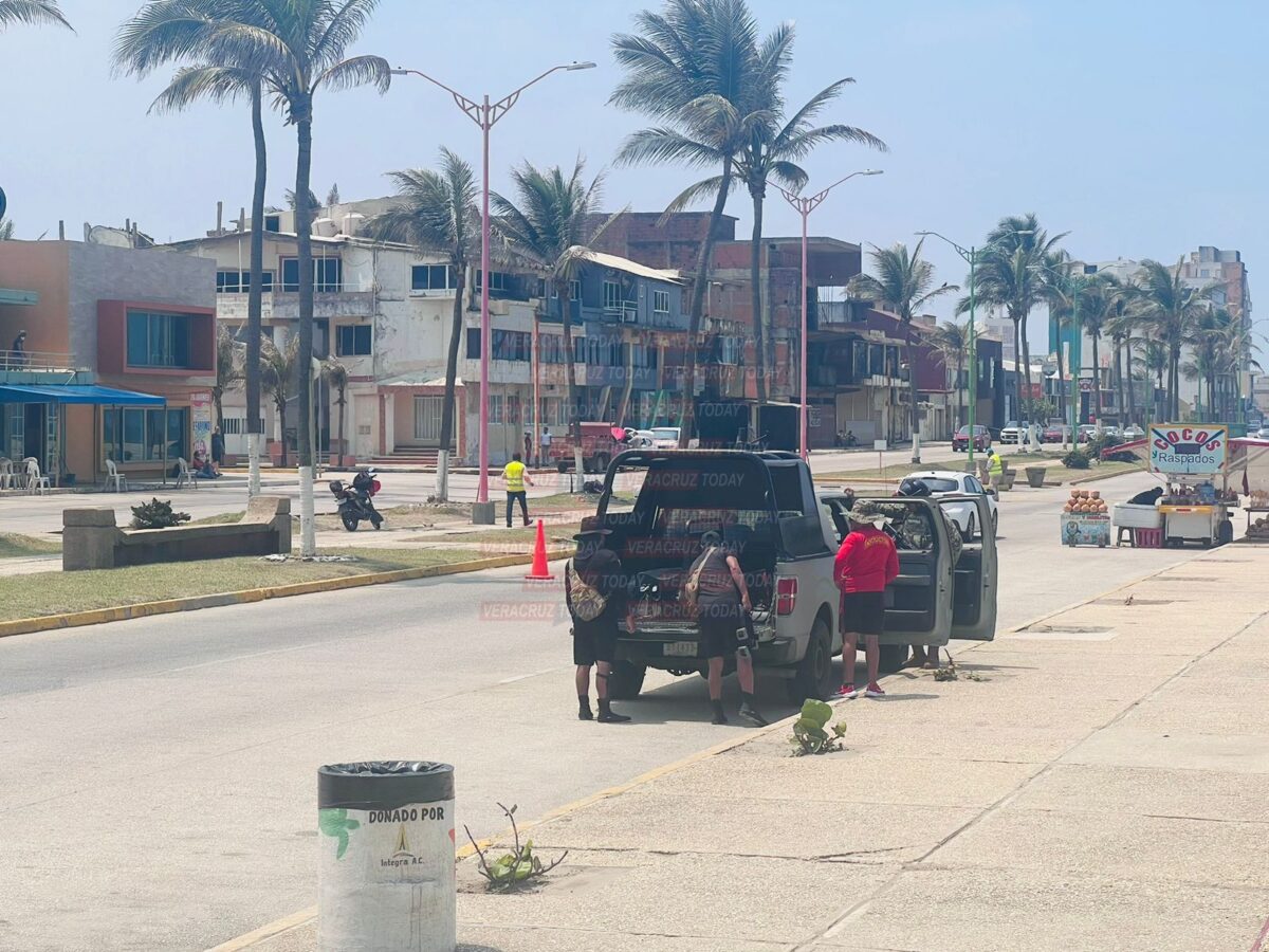 Sobre el malecón, a la altura de la zona donde supuestamente se cayó el arma, hay una camioneta de la marina resguardando, en caso que las olas hagan que recale, además que seguido se observa una lancha de la corporación recorres varias millas en el mar y actualmente ya hasta instalaron una casa de campaña.