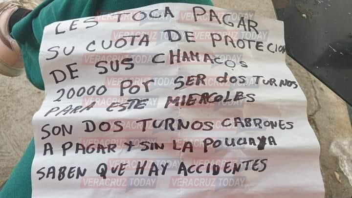 “Les toca paga cuota de protección de sus chamacos, 20000 mil por ser dos turnos para este miércoles. Son dos turnos cabrones a pagar y sin la policía, saben que hay antecedentes”, se lee en el mensaje,