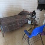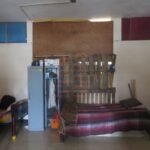 En cada dormitorio tienen dos ventiladores que les regalaron o que recogieron, todos expuestos y amarrados en sillas para que no se caigan. Aunque lo que más preocupa a los elementos son los daños que presenta la estructura de concreto en algunas partes donde se observa la pared quebrada.
