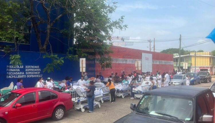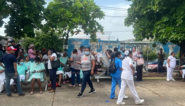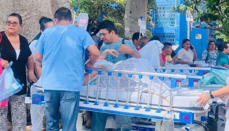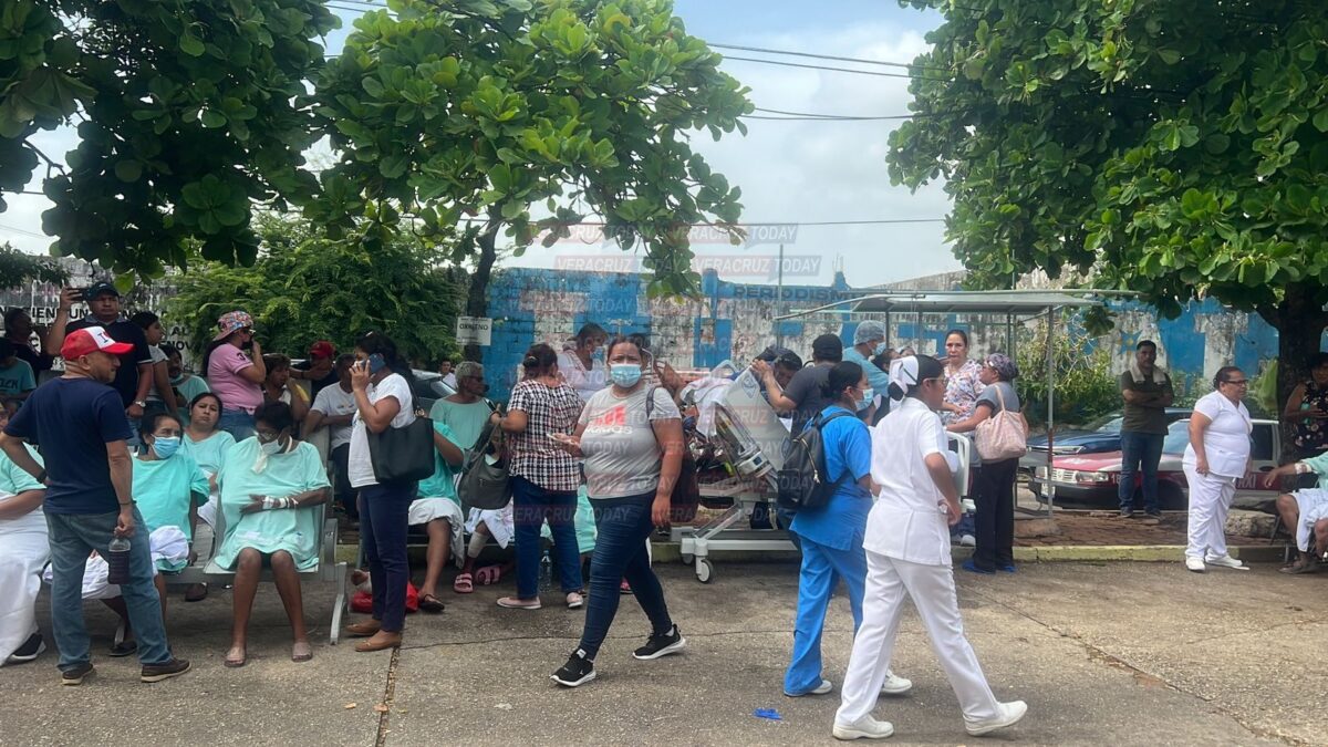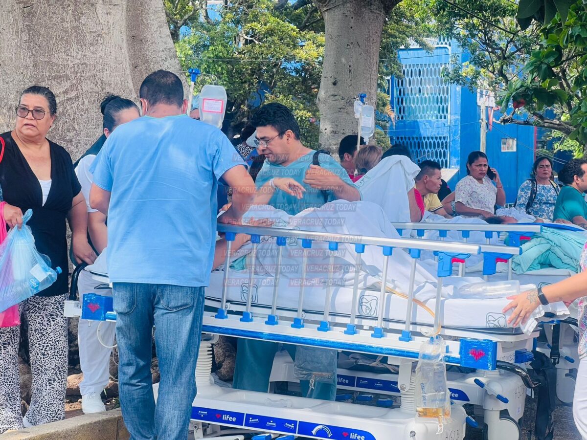 En camillas, sillas de rueda y con sueros sacaron a los enfermos y embarazadas en labor parto hacia las calles aledañas. Ante la falta de camillas, algunos enfermos fueron sentados en bancas y sillas de plástico.