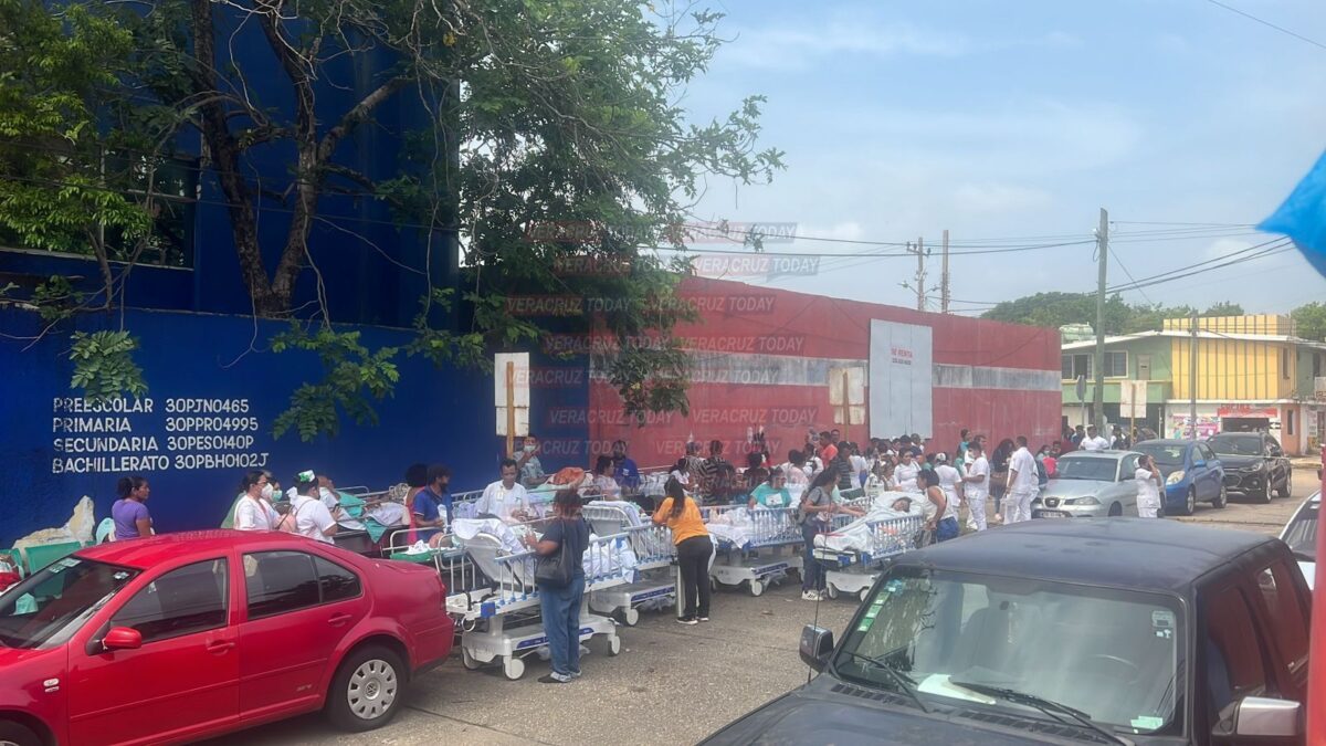 Sobre la calle y en un parque cercano, médicos y enfermeras estaban atendiendo a hombres, mujeres y niños con diversos padecimientos, en tanto se generaban condiciones seguras para ser nuevamente ingresados al hospital.