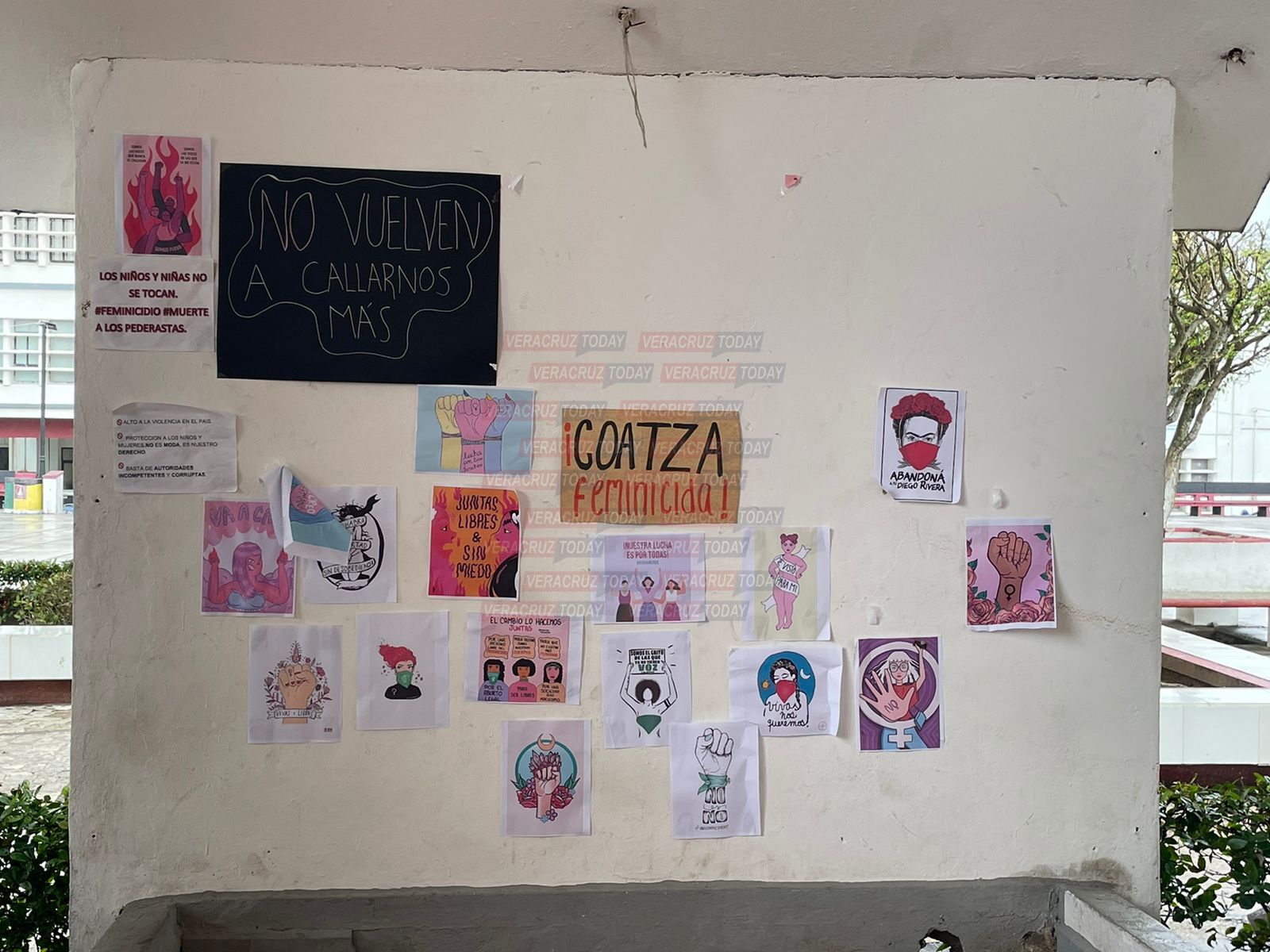 Tras la violación y el asesinato de una niña y su mamá en Coatzacoalcos, feministas se movilizaron y colocaron un mural en el parque independencia para pedir un alto a la violencia de género.