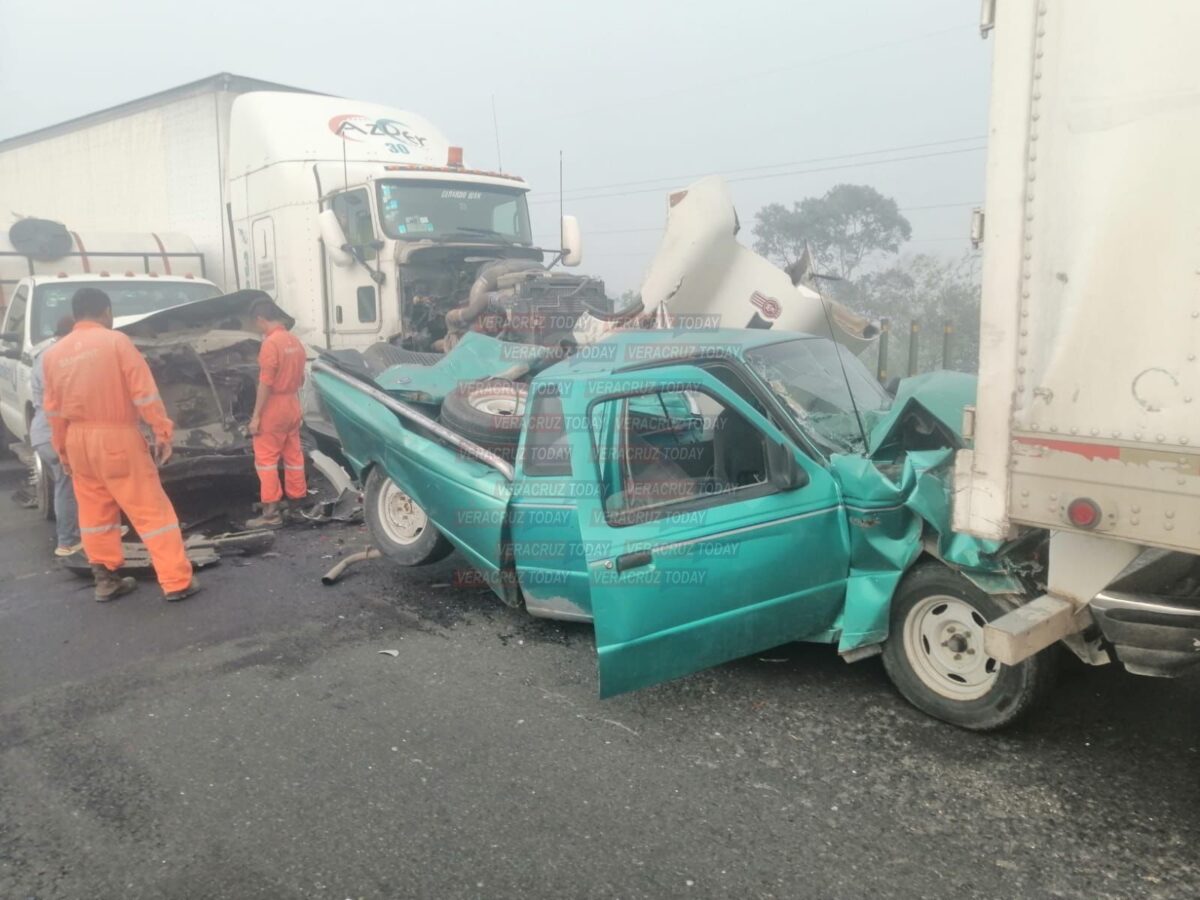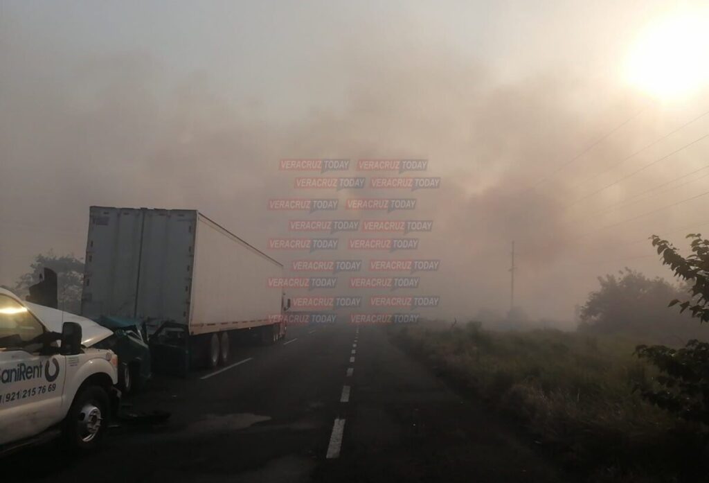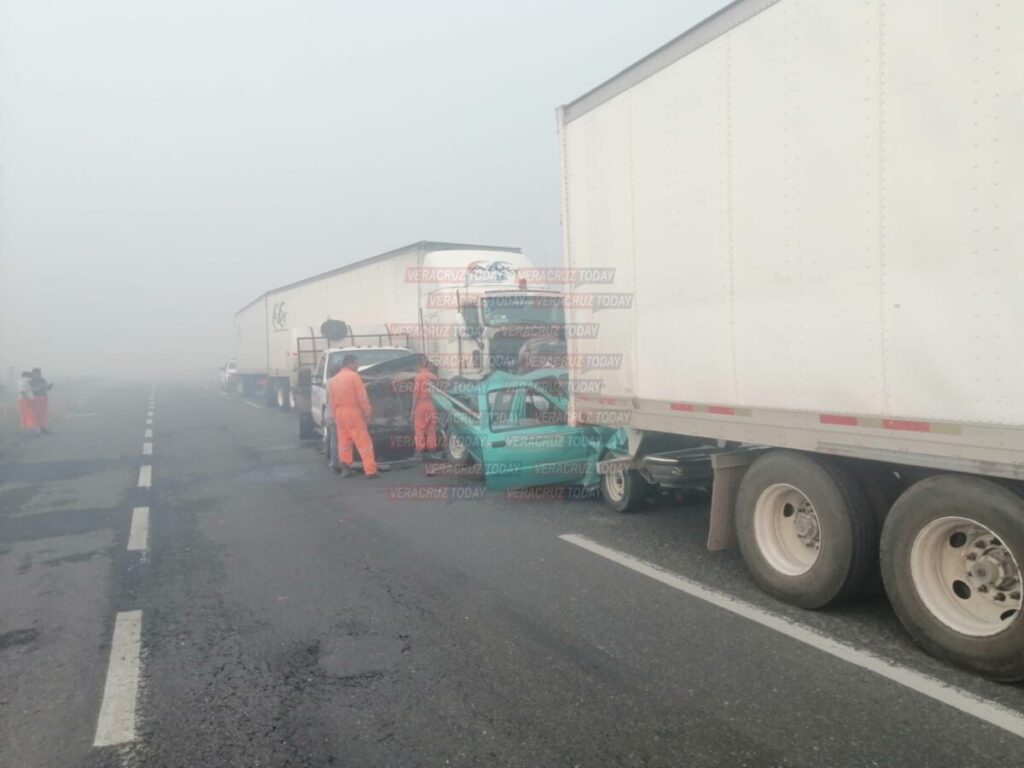 De acuerdo con el reporte de Protección Civil, el múltiple accidente se registró la tarde de este viernes 23 de junio, debido a una columna de humo por una quema en zona pantanosa, un tráiler frenó intempestivamente y las demás unidades chocaron por alcance.