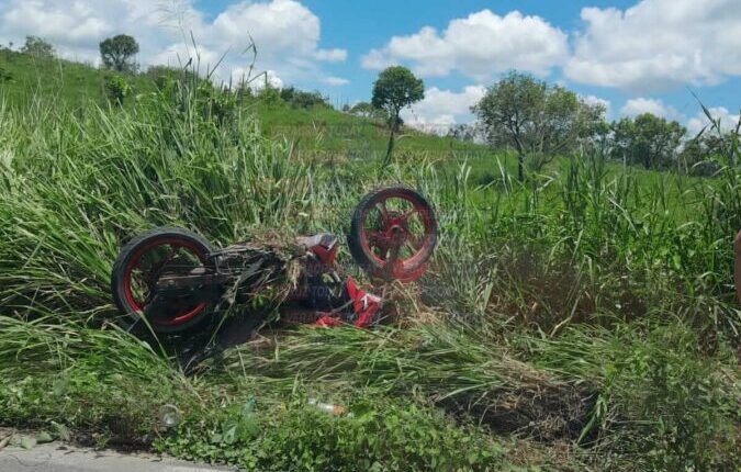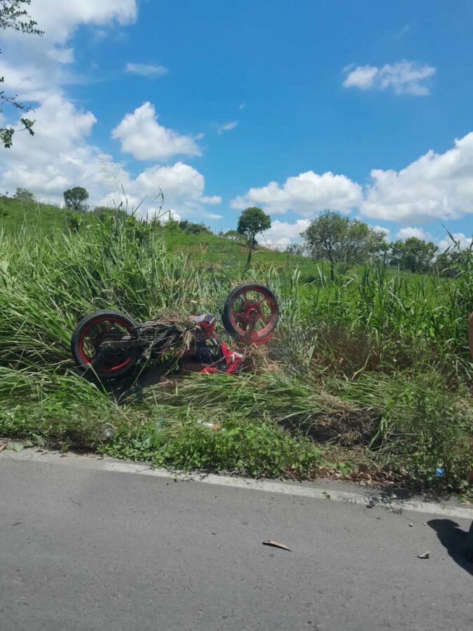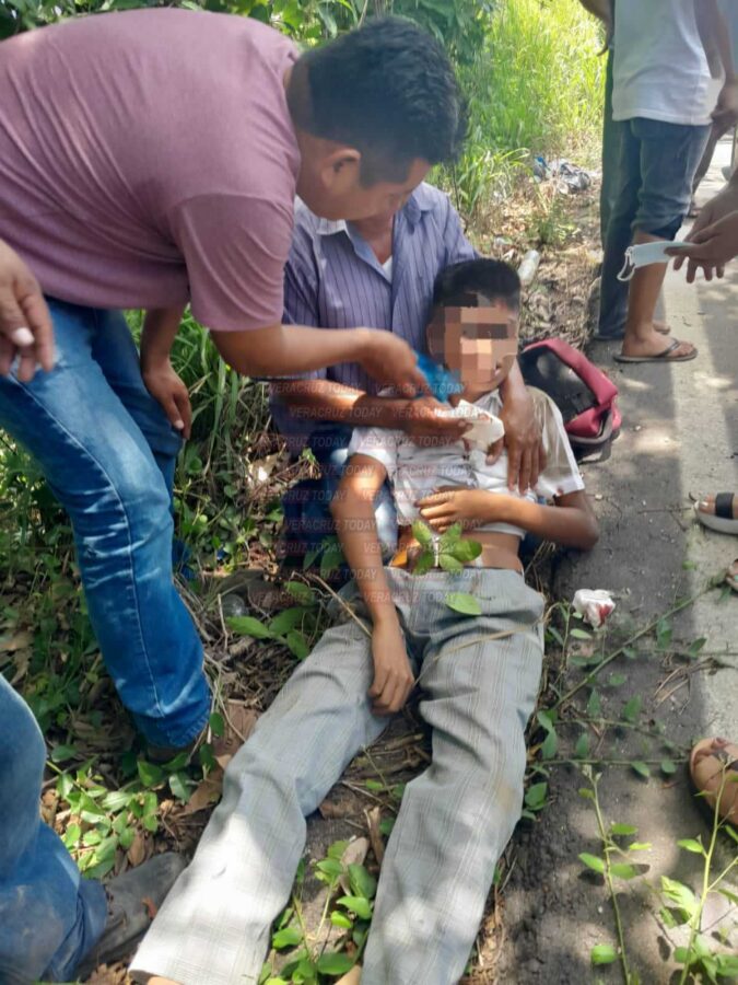 Fueron vecinos de la zona y automovilistas que se detuvieron para auxiliar al estudiante de secundaria que sufrió fuertes lesiones, mientras su motocicleta terminó fuera de la carretera, entre el monte de donde fue sacada.