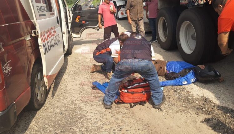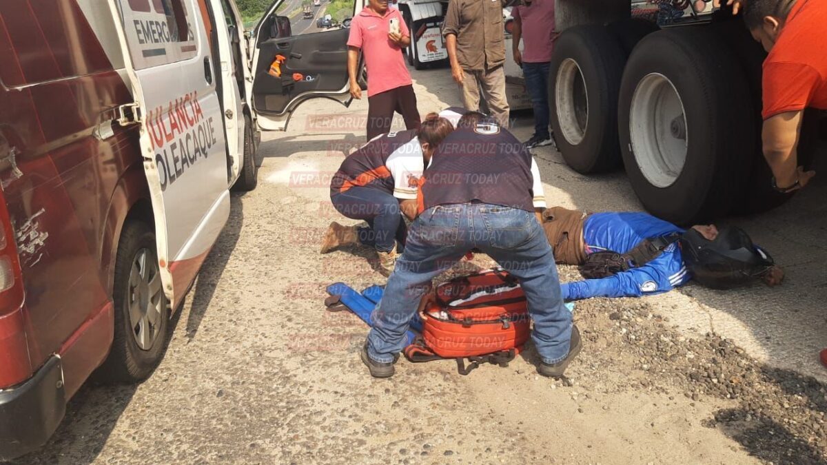Cosoleacaque, Ver. La tarde de este martes un joven motociclista fue atropellado por un temerario conductor cuando viajaba sobre la carretera transistmica Cosoleacaque- Minatitlán, frente a la colonia El Naranjito, a donde arribaron paramédicos y policías.