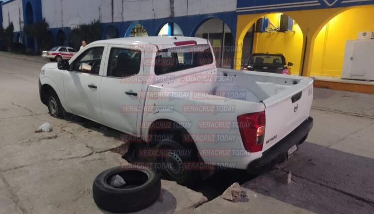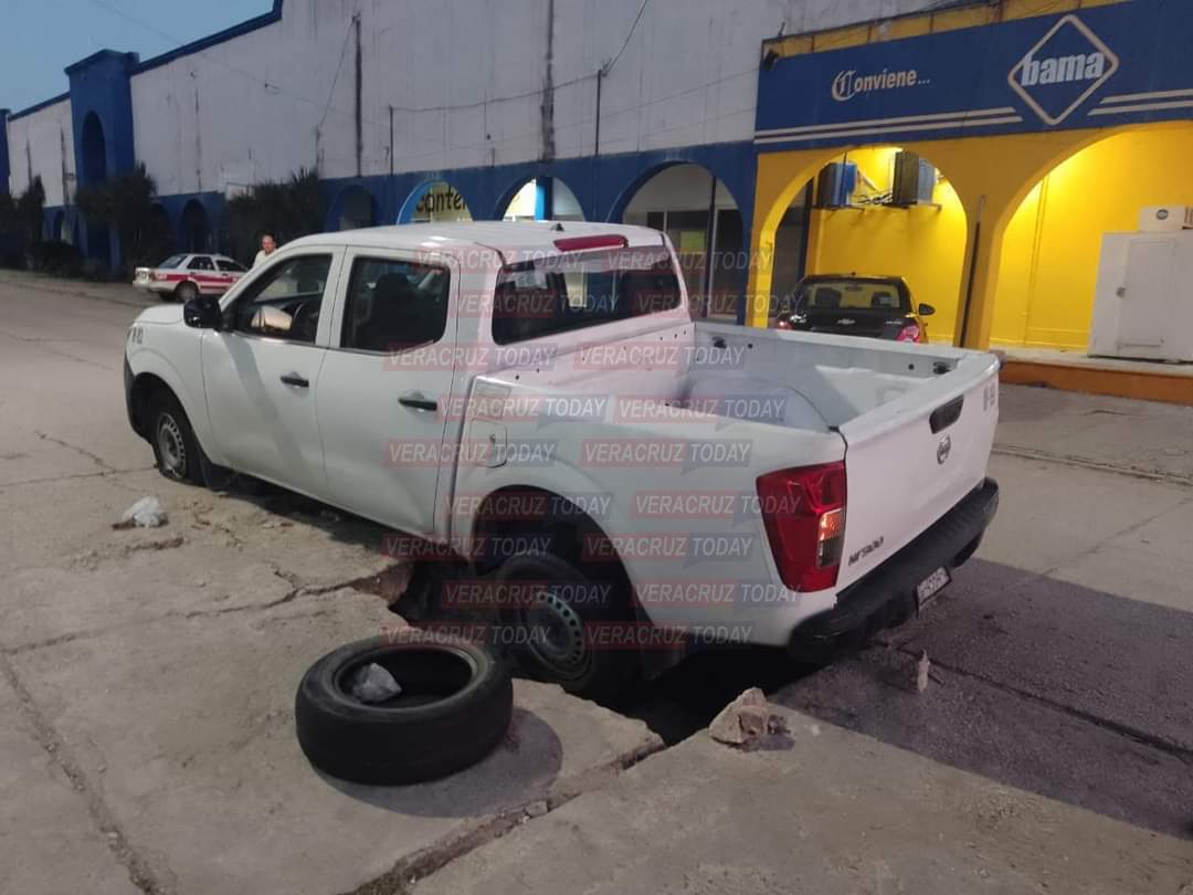 Fue la tarde de este jueves diez de noviembre cuando a través de las redes sociales, usuarios publicaron fotografías de la camioneta oficial que cayó en un socavón que se formó desde hace varias semanas en la colonia Playa Sol, frente a una tienda de conveniencia.