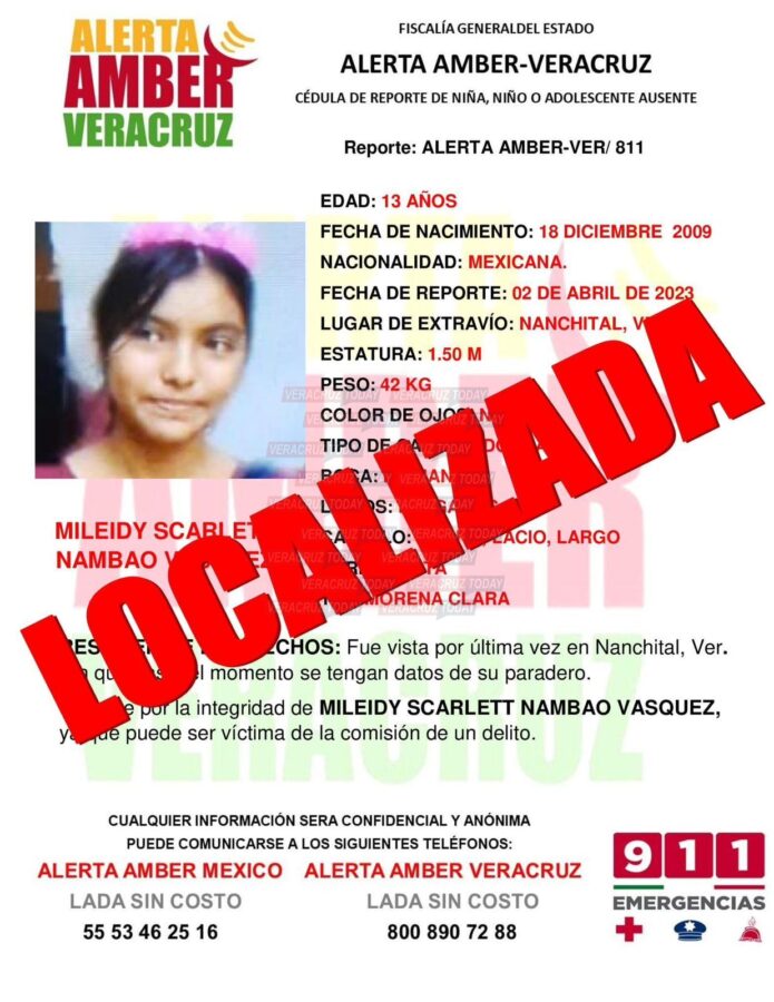 Este viernes 14 de abril, la página oficial de Alerta Amber Veracruz informo que ya fue localizada con vida, trascendió que la localizaron en el estado Guerrero.