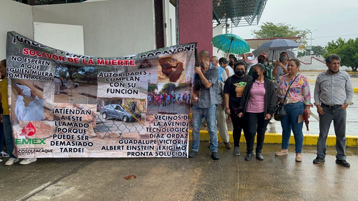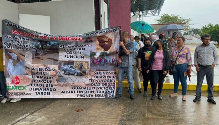 Por debajo de la calle se observan grandes cavernas que abarcan varios metros en lo que ellos le llaman «el socavón de la muerte», ante esta situación la mañana de este lunes se manifestaran marchando al Complejo Petroquímico de Cosoleacaque.