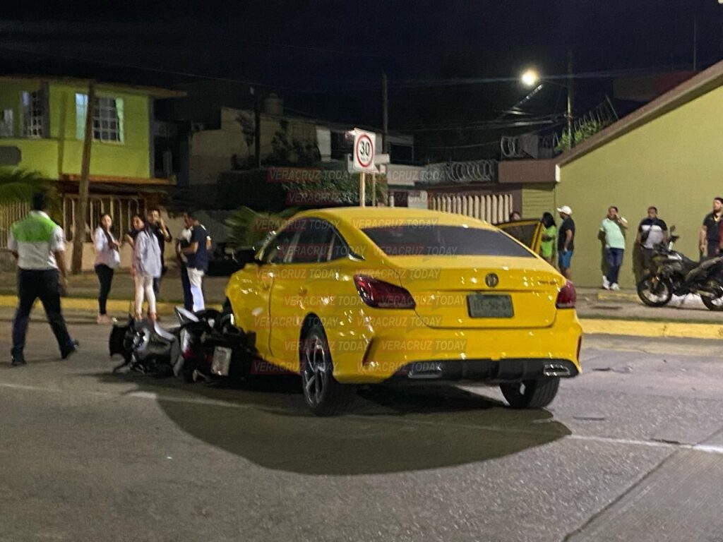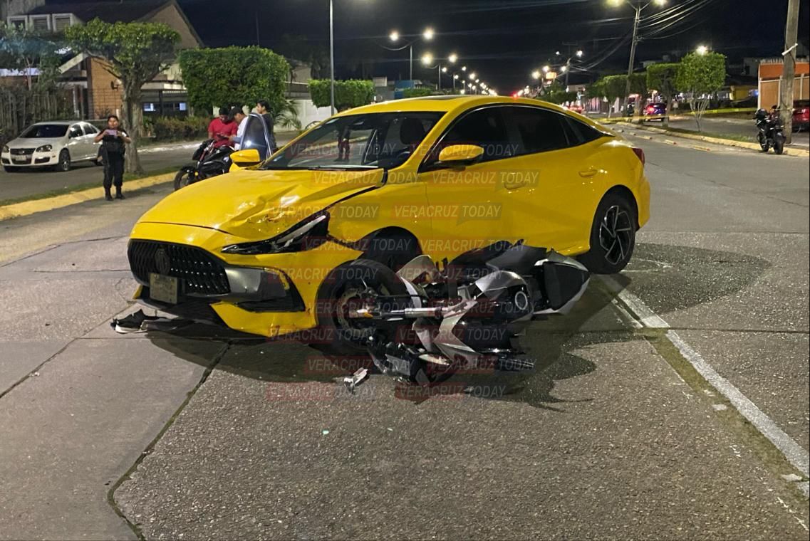 Minatitlán, Ver. Un joven motociclista chocó en contra de un automóvil particular la noche de ayer domingo en los momentos que ambos viajaban sobre la avenida Heroico Colegio Militar en la colonia Petrolera.