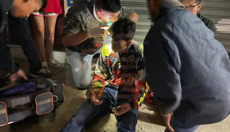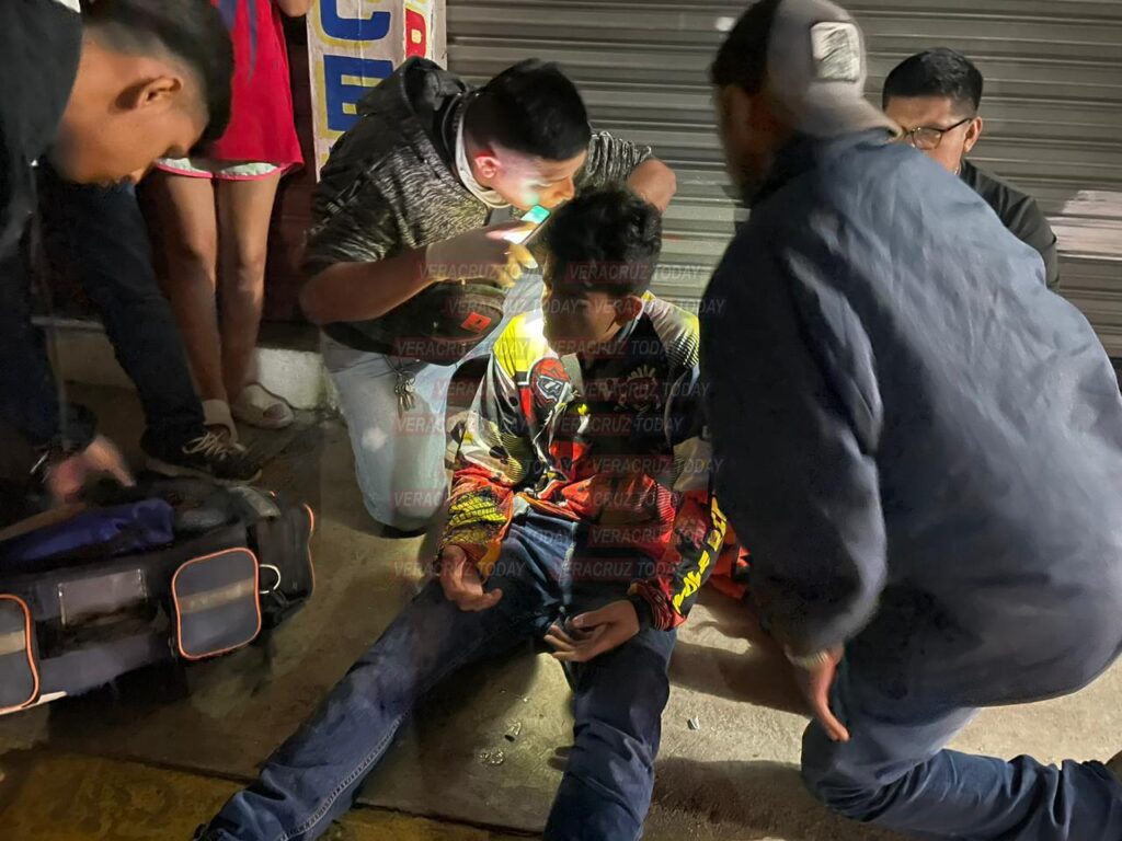 Cosoleacaque, Ver. Con una posible fractura en uno de sus brazos resultó un joven motociclista al ser embestido por una camioneta particular la noche de ayer miércoles, en los instantes que circulaban sobre calles de la colonia José F. Gutiérrez.