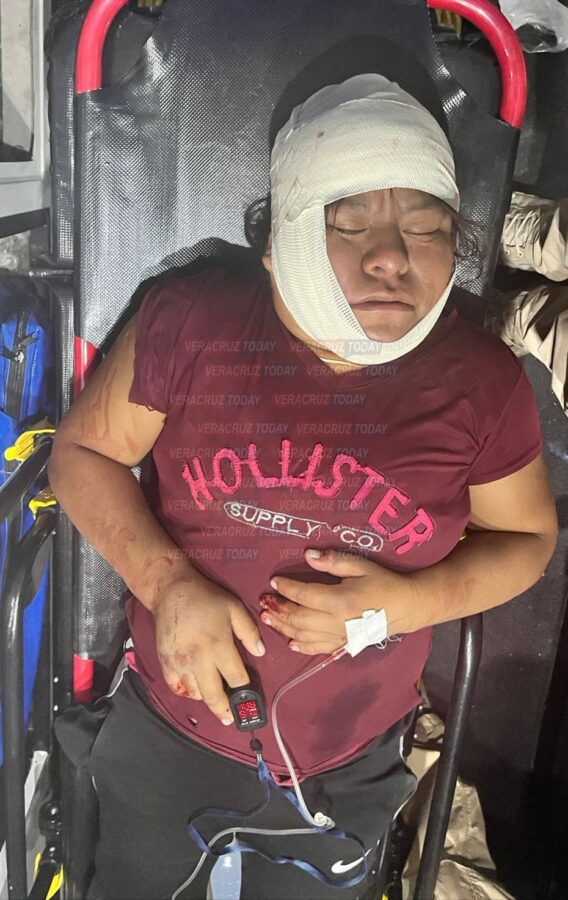 Paramédicos de Protección Civil llegaron al lugar y encontraron a María gravemente herida, tendida en el suelo en un charco de sangre. Fue trasladada de emergencia al Hospital Regional Acayucan – Oluta, donde su estado de salud se reporta delicado debido a un posible traumatismo craneoencefálico.