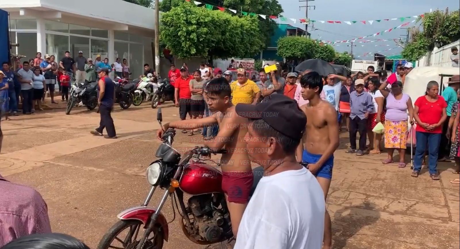 Pobladores del municipio de Pajapan exhibieron a dos jovenes, paseándolos semi desnudos por las calles hasta la plaza central del municipio enclavado en la zona Serra del sur de Veracruz, presuntamente atacaron con un arma punzo contante a tres personas después de un partido de fútbol.