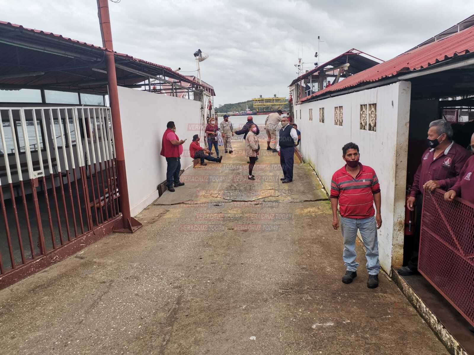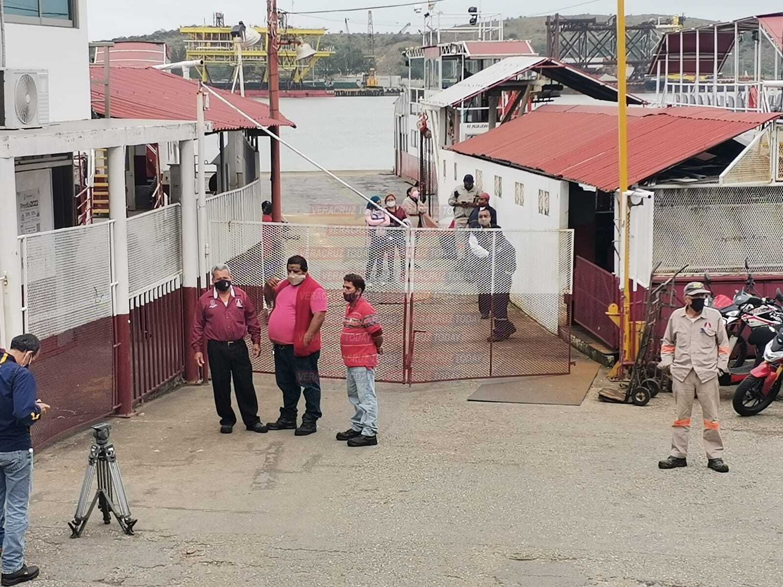 Los trabajadores cerraron la la puerta principal de la rampa de acceso al transbordador, generando un descontento entre los usuarios, principalmente de conductores quienes no tuvieron de otra más que cruzar el Túnel Sumergido que implica el pago de la caseta de cobro que recientemente subió de precio.