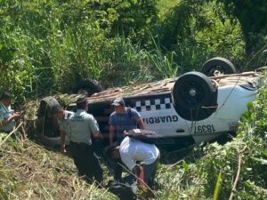 Los oficiales solo resultaron con heridas leves, y fueron auxiliados por automovilistas, mismos que dieron aviso a las corporaciones de auxilio, en tanto la unidad fue rescatada por una grúa.