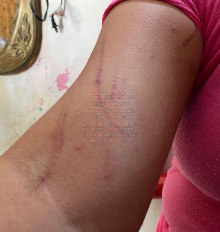 “Nos trituraron, nos llevaron con violencia, me quitaron mi celular porque yo iba grabando, me decían que yo tenía que decir dónde estaba el punto, y que les diera la contraseña de mi celular porque si no me iba a ir peor, les tuve que dar mi contraseña porque me golpeaban muy feo en mi vientre y mi cabeza”.