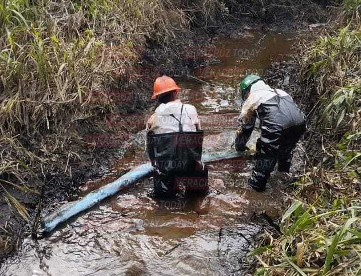 Por lluvias, hidrocarburo se extiende en más de seis kilómetros de arroyo, tras derrame en Ixhuatlán