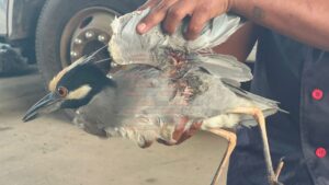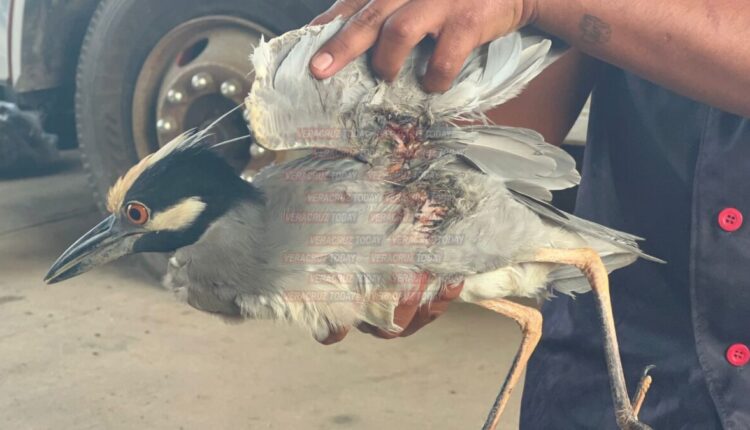 Debido a la lesión que presenta este ejemplar de martinete coronado, Protección Civil lo canalizó a la Dirección de Ecología para que dé parte a la Procuraduría Federal de Protección al Ambiente (Profepa) y se pueda atender su lesión.
